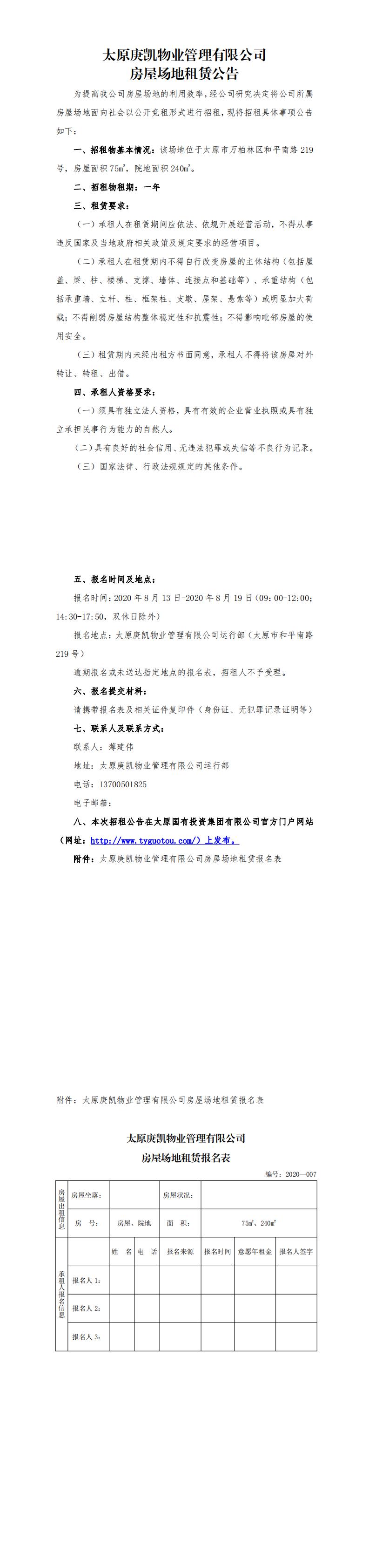 太原庚凱物業(yè)管理有限公司房屋場地租賃公告(七)