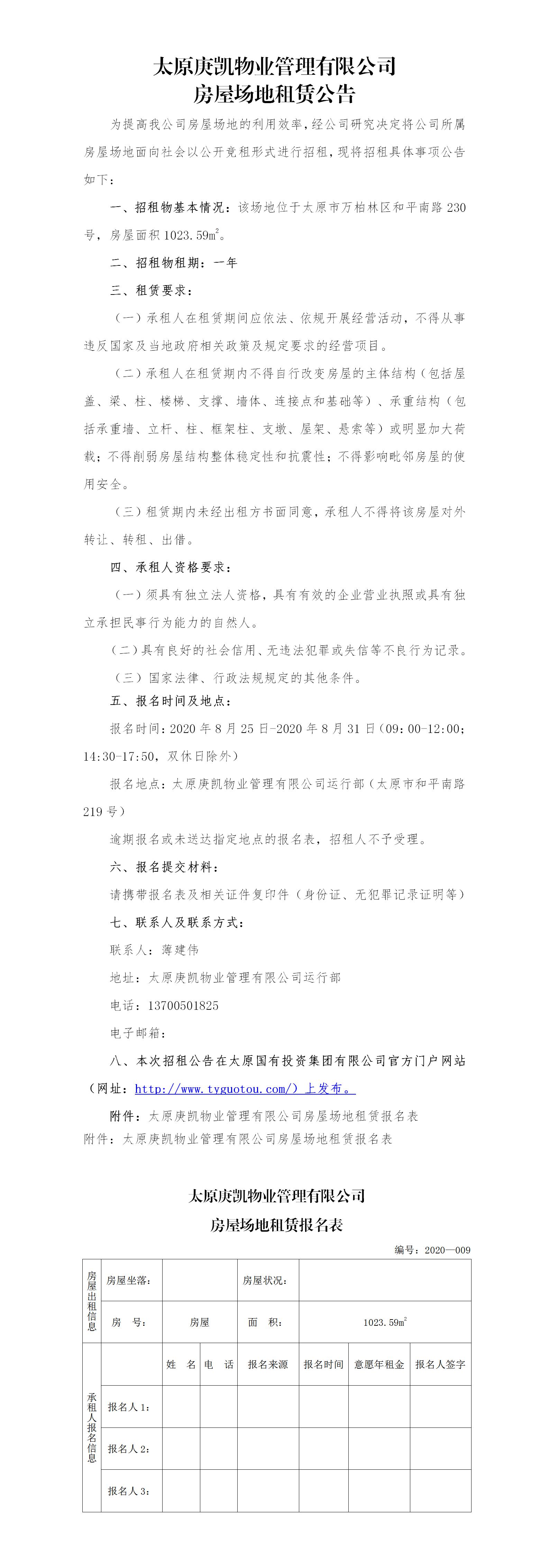 太原庚凱物業(yè)管理有限公司房屋場(chǎng)地租賃公告(九)