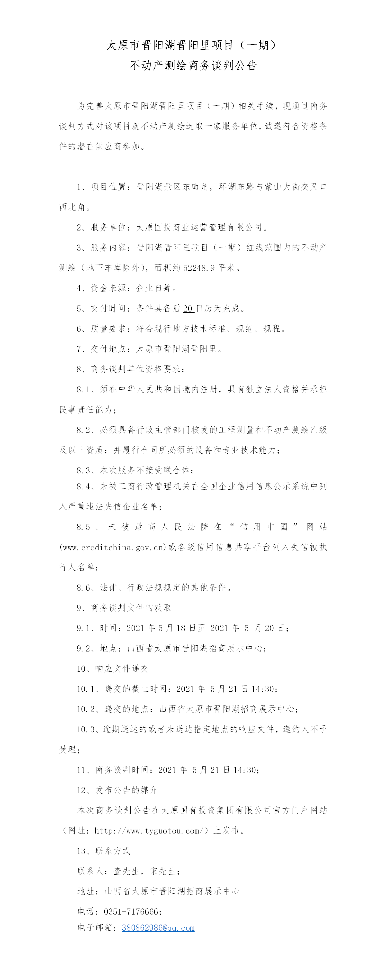 太原市晉陽湖晉陽里項目(一期)不動產(chǎn)測繪商務(wù)談判公告