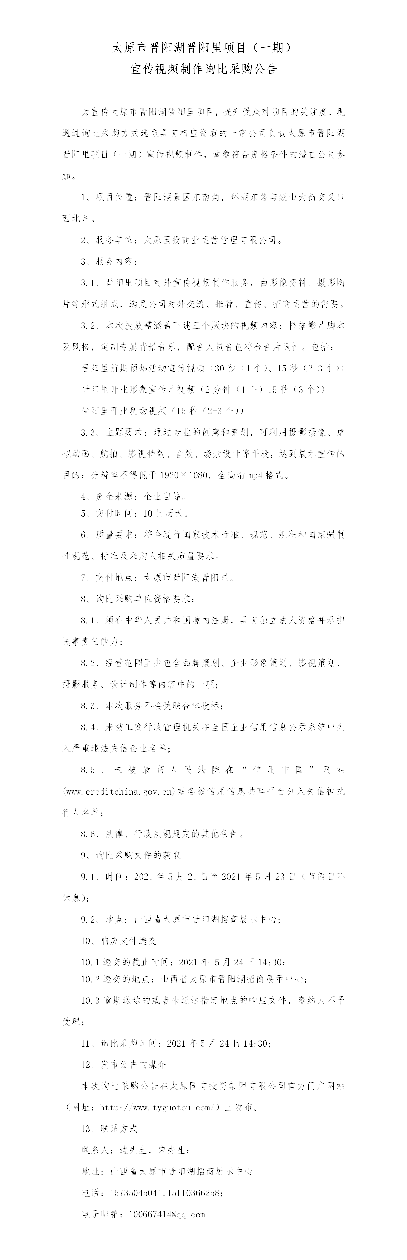 太原市晉陽(yáng)湖晉陽(yáng)里項(xiàng)目(一期)宣傳視頻制作公告