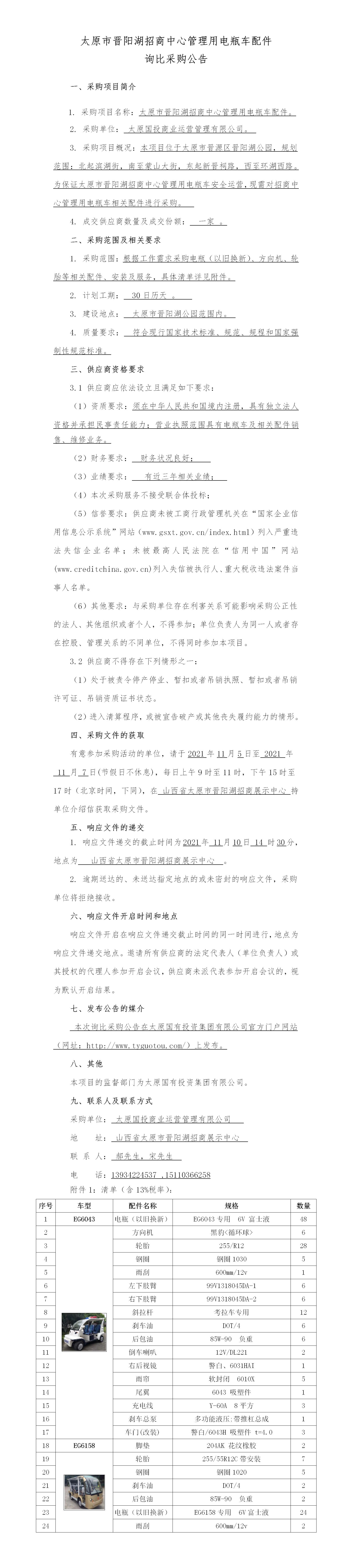 太原市晉陽湖公園管理用電瓶車相關(guān)配件詢比采購公告