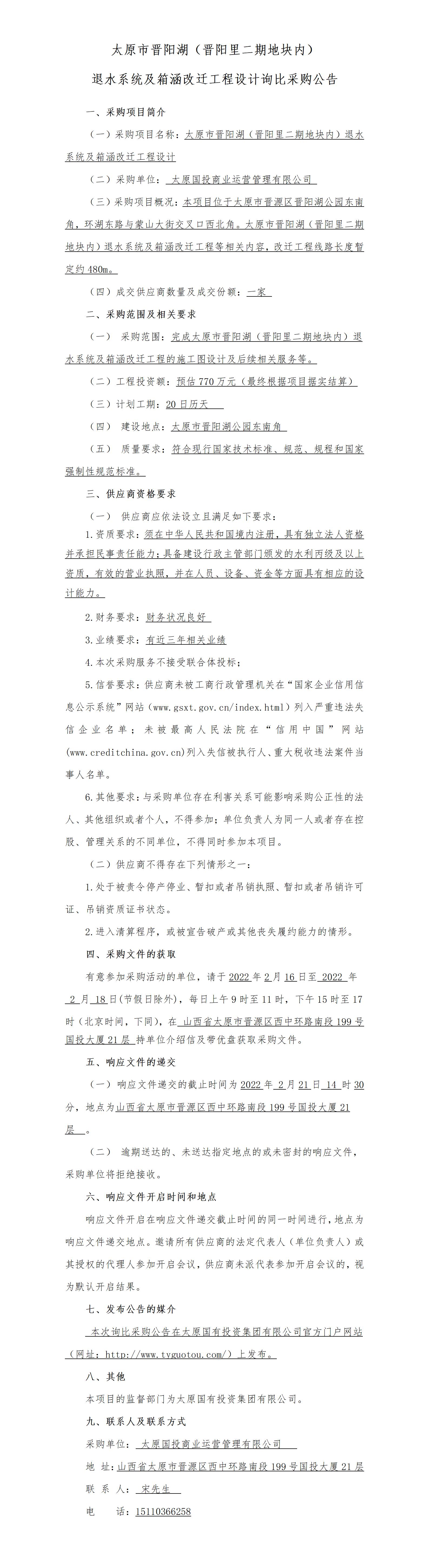 太原市晉陽湖(晉陽里二期地塊內(nèi))退水系統(tǒng)及箱涵改遷工程設(shè)計詢比采購公告(1)