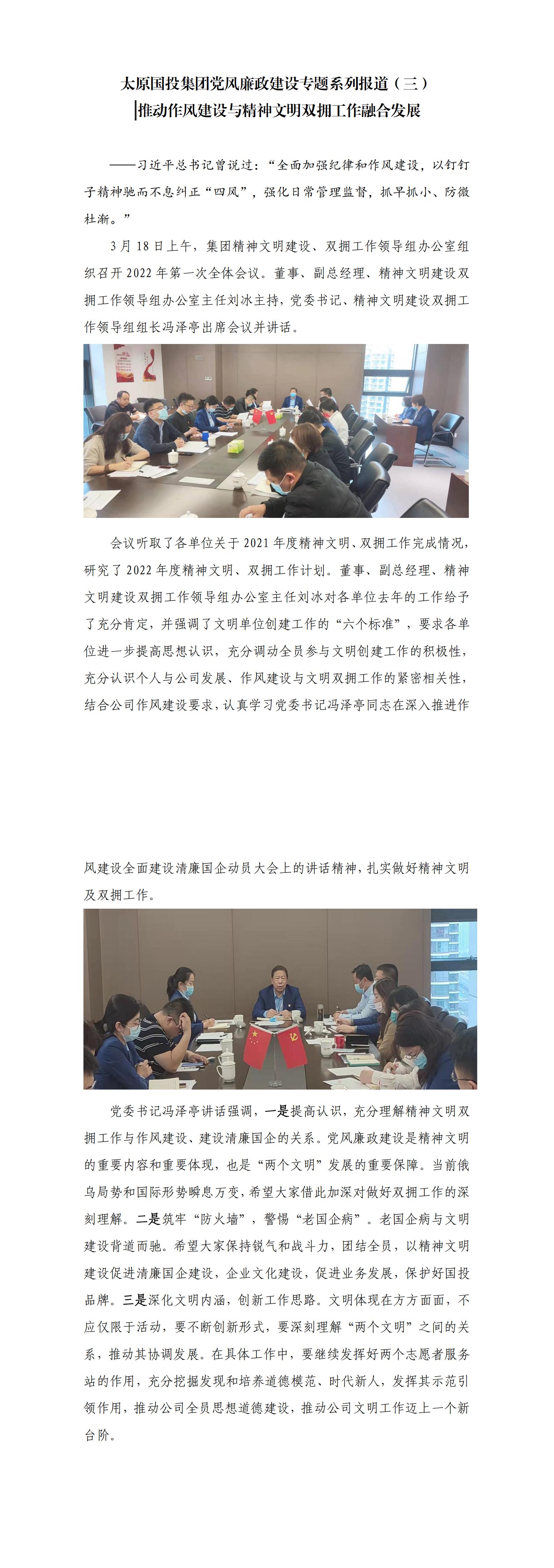 太原國投集團(tuán)黨風(fēng)廉政建設(shè)專題系列報(bào)道(三)推動(dòng)作風(fēng)建設(shè)與精神文明雙擁工作融合發(fā)展