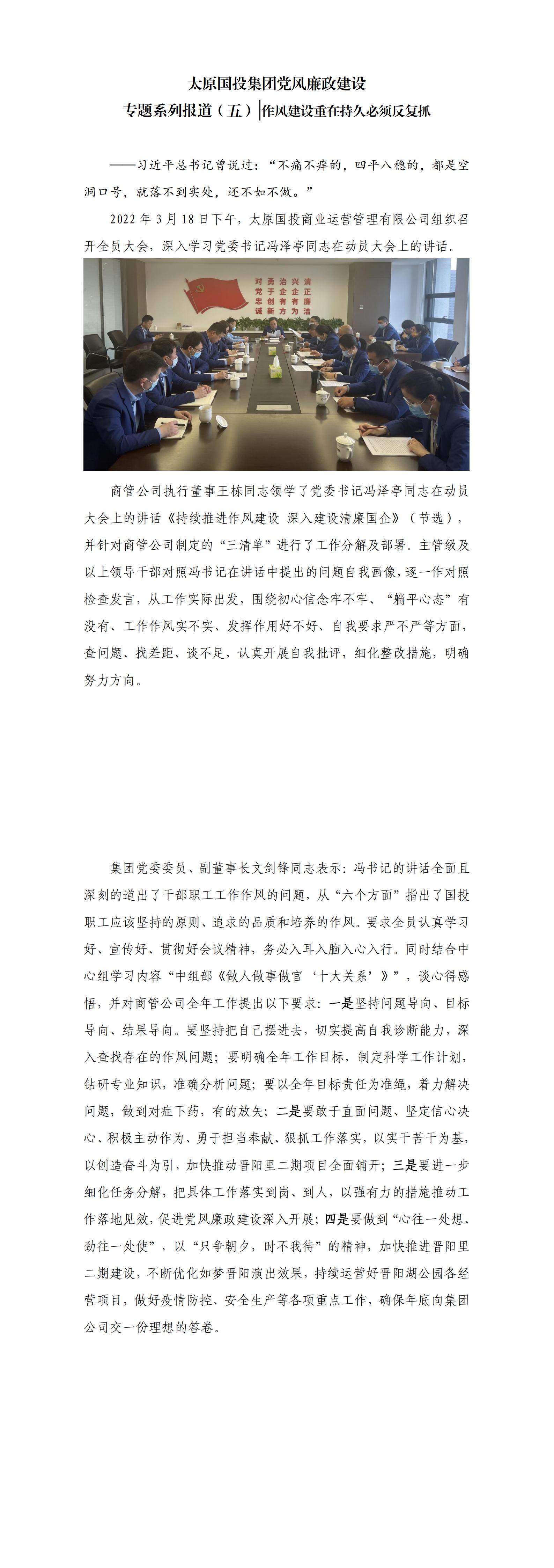 太原國(guó)投集團(tuán)黨風(fēng)廉政建設(shè)專題系列報(bào)道(五)作風(fēng)建設(shè)重在持久必須反復(fù)抓