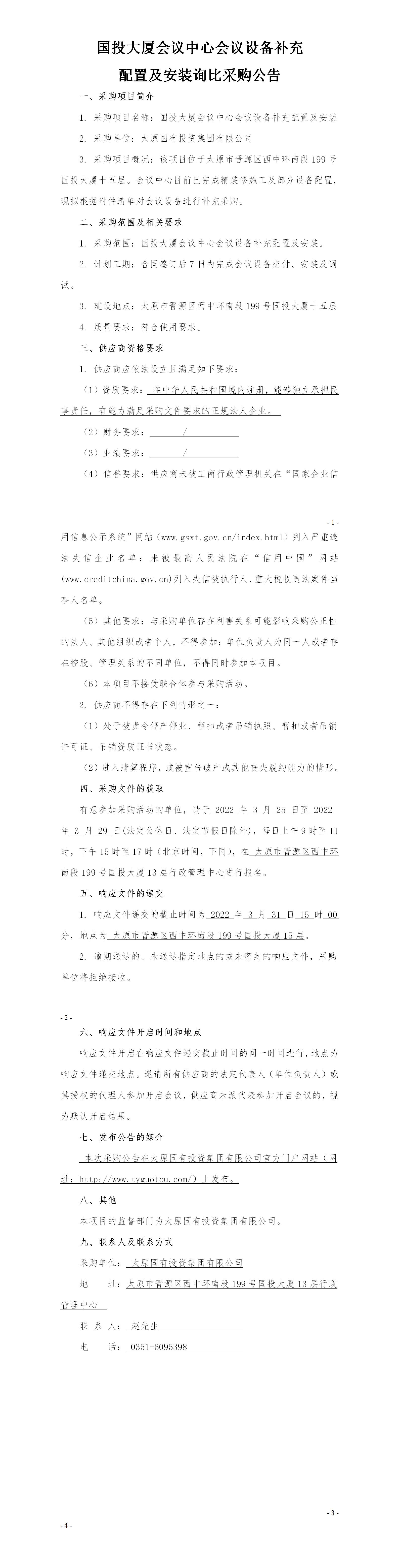 國投大廈會(huì)議中心會(huì)議設(shè)備補(bǔ)充配置及安裝詢比采購公告