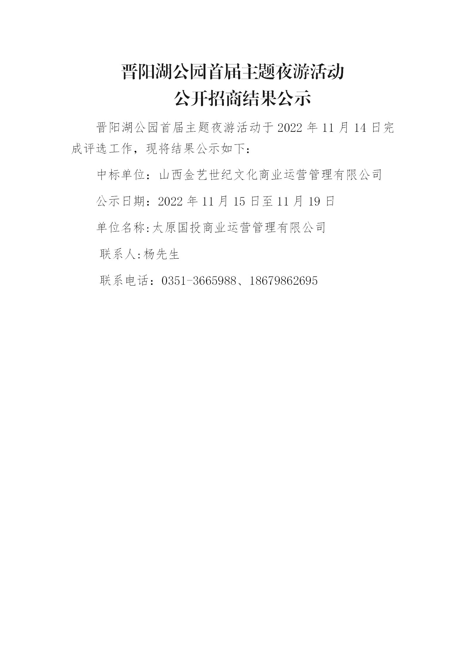晉陽湖公園首屆主題夜游活動(dòng)公開招商結(jié)果公示