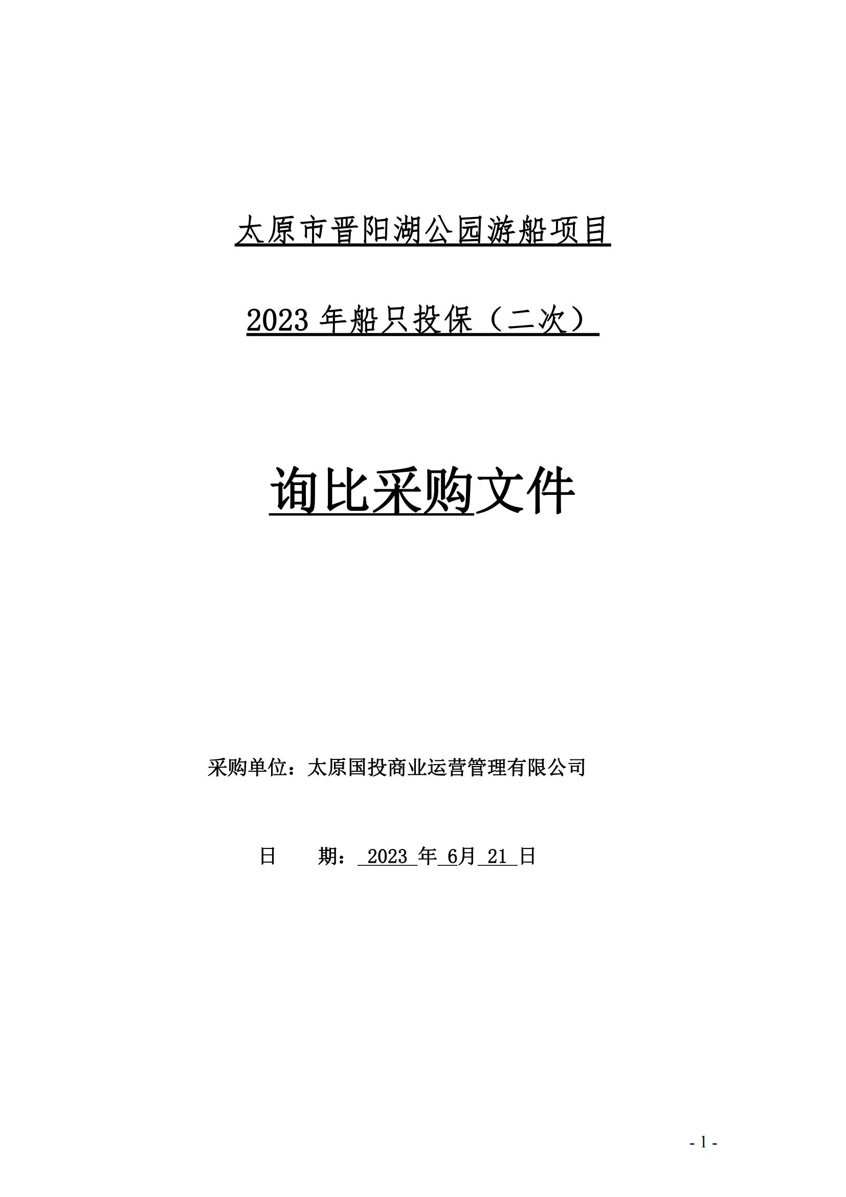 太原市晉陽湖公園游船項(xiàng)目 2023年船只投保(二次)