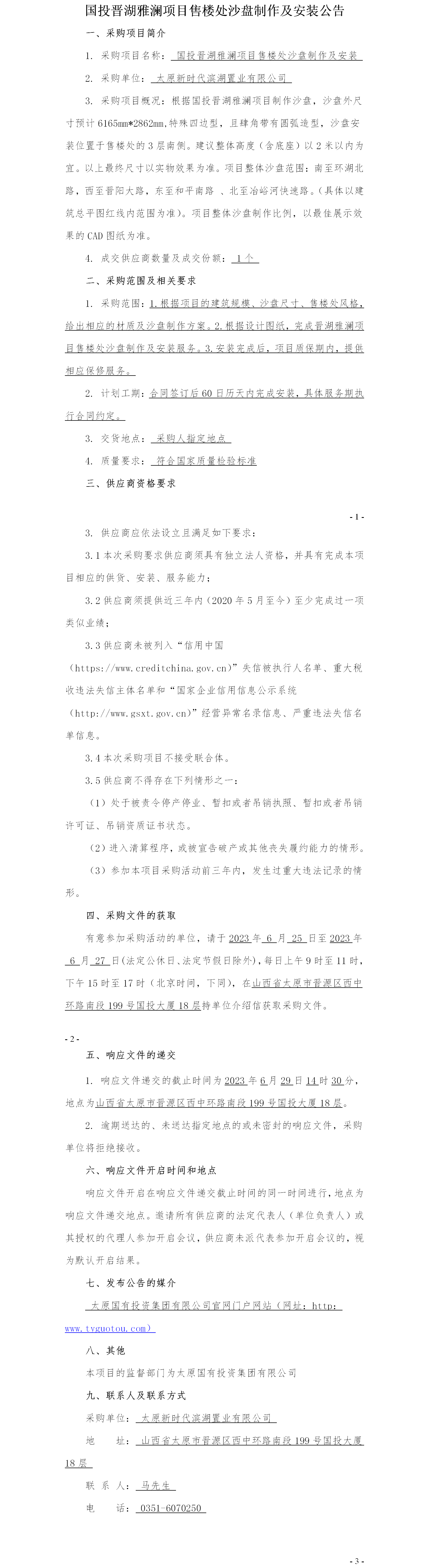 國(guó)投晉湖雅瀾項(xiàng)目售樓處沙盤制作及安裝詢比公告