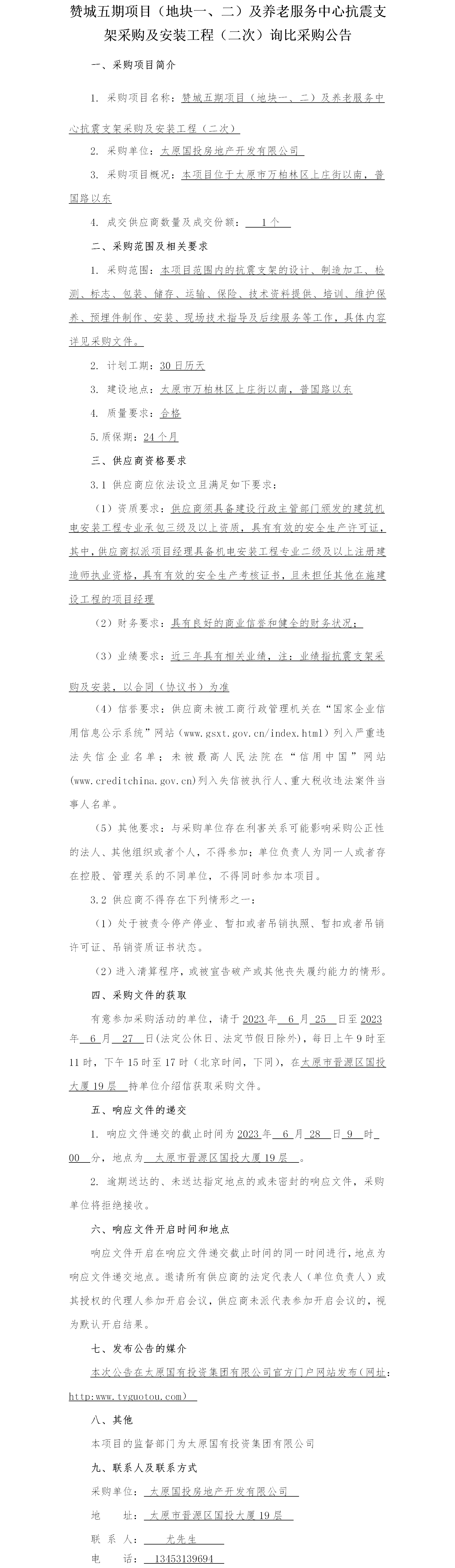 贊城五期項(xiàng)目(地塊一、二)及養(yǎng)老服務(wù)中心抗震支架采購及安裝工程(二次)詢比采購公告