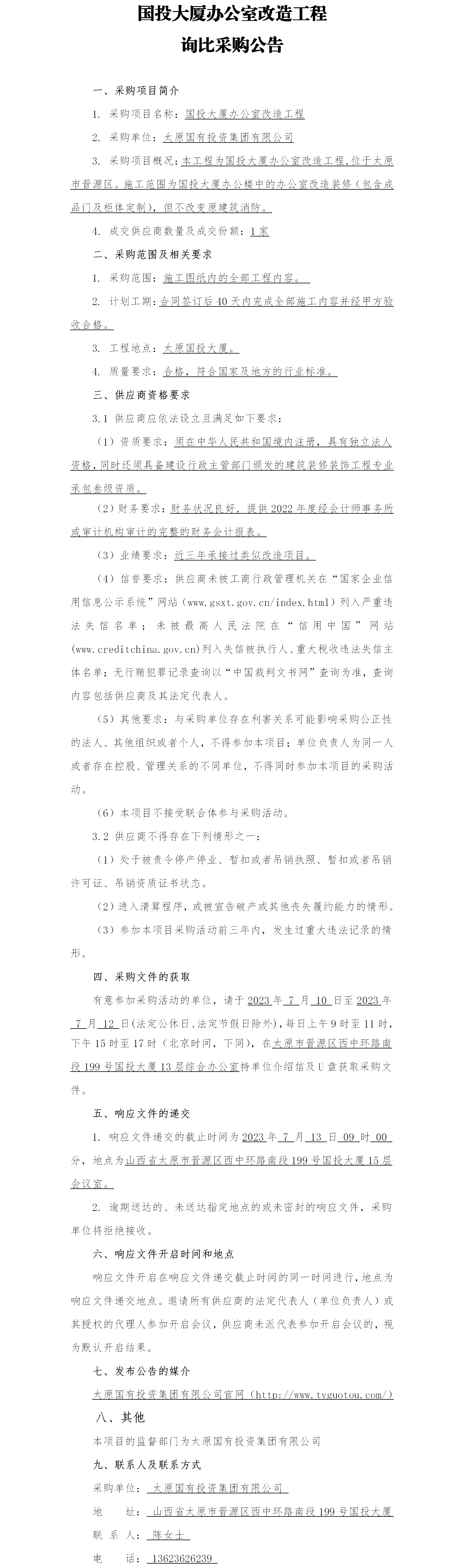太原國有投資集團有限公司 ?版權所有 地址:太原市萬柏林區(qū)和平南路219號 聯(lián)系電話:0351-2607986