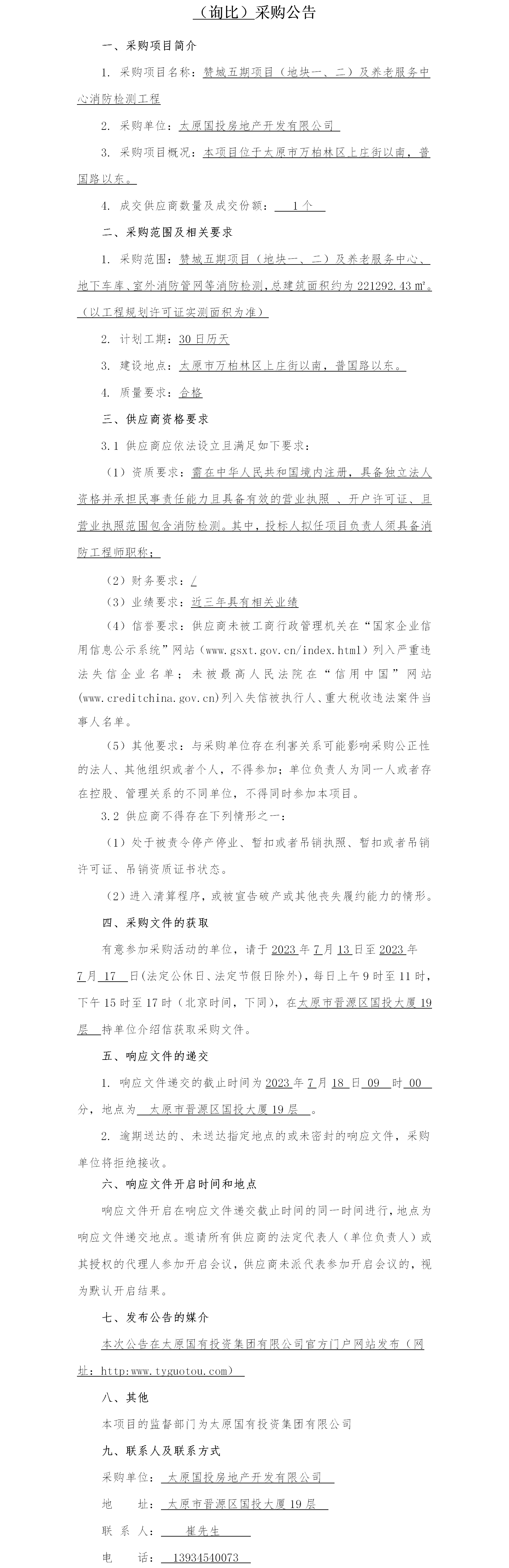 贊城五期項目(地塊一、二)及養(yǎng)老服務(wù)中心消防檢測工程(詢比)采購公告