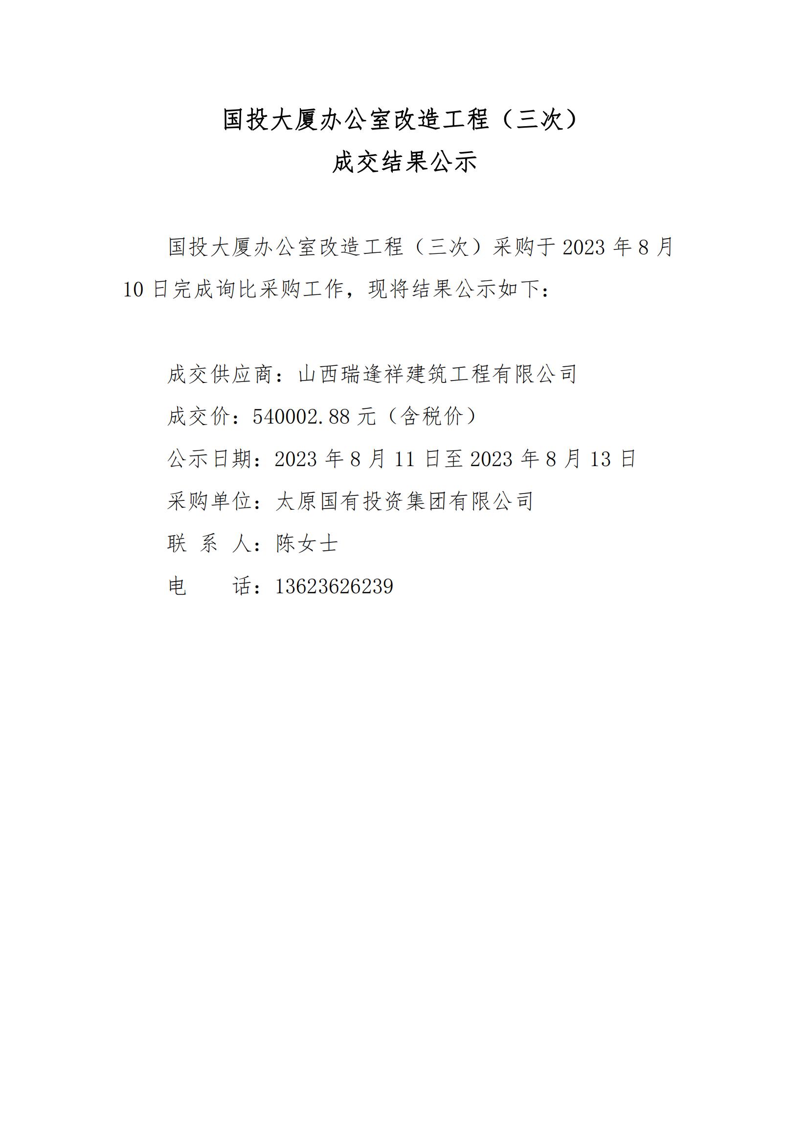 國投大廈辦公室改造工程(三次) 成交結(jié)果公示