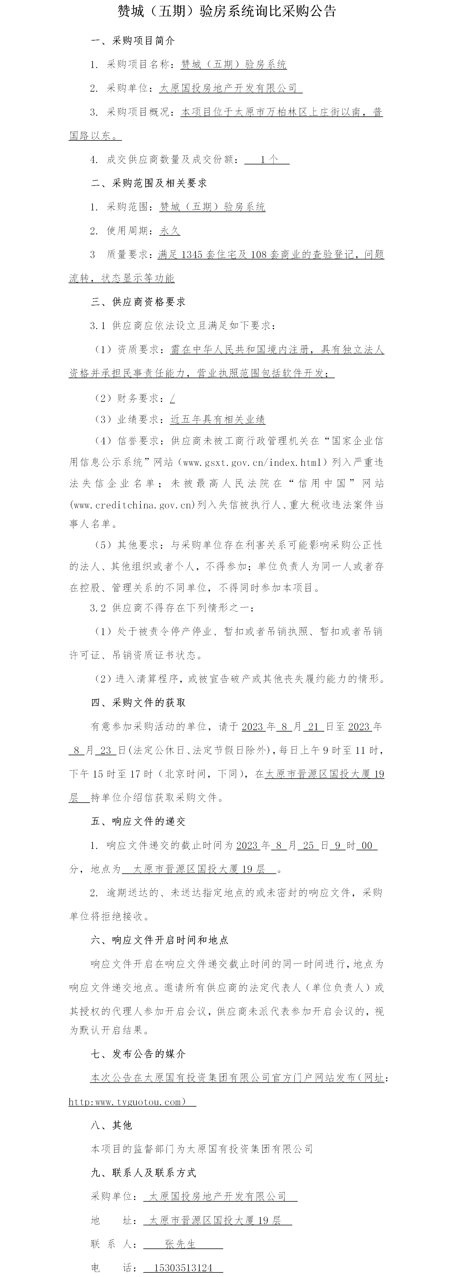 贊城(五期)驗(yàn)房系統(tǒng)詢比采購公告