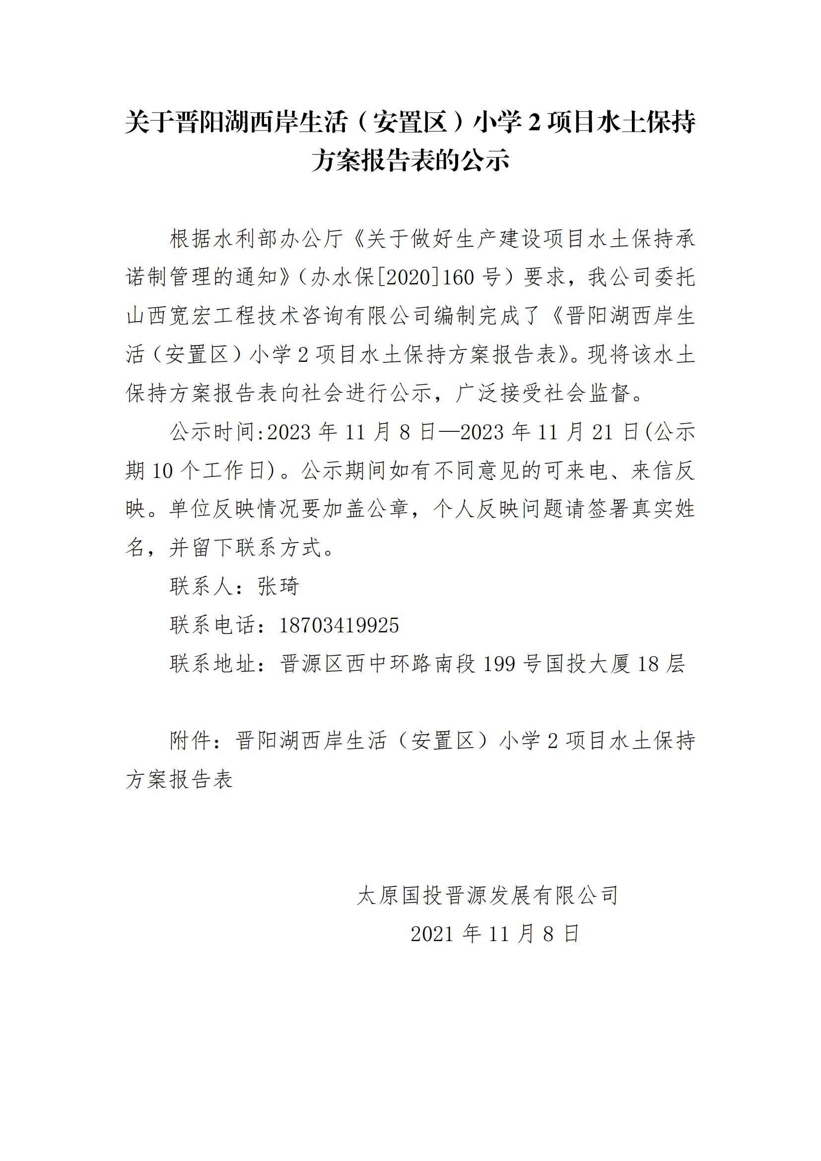 關(guān)于晉陽湖西岸生活(安置區(qū))小學(xué)2項(xiàng)目水土保持方案報(bào)告表的公示