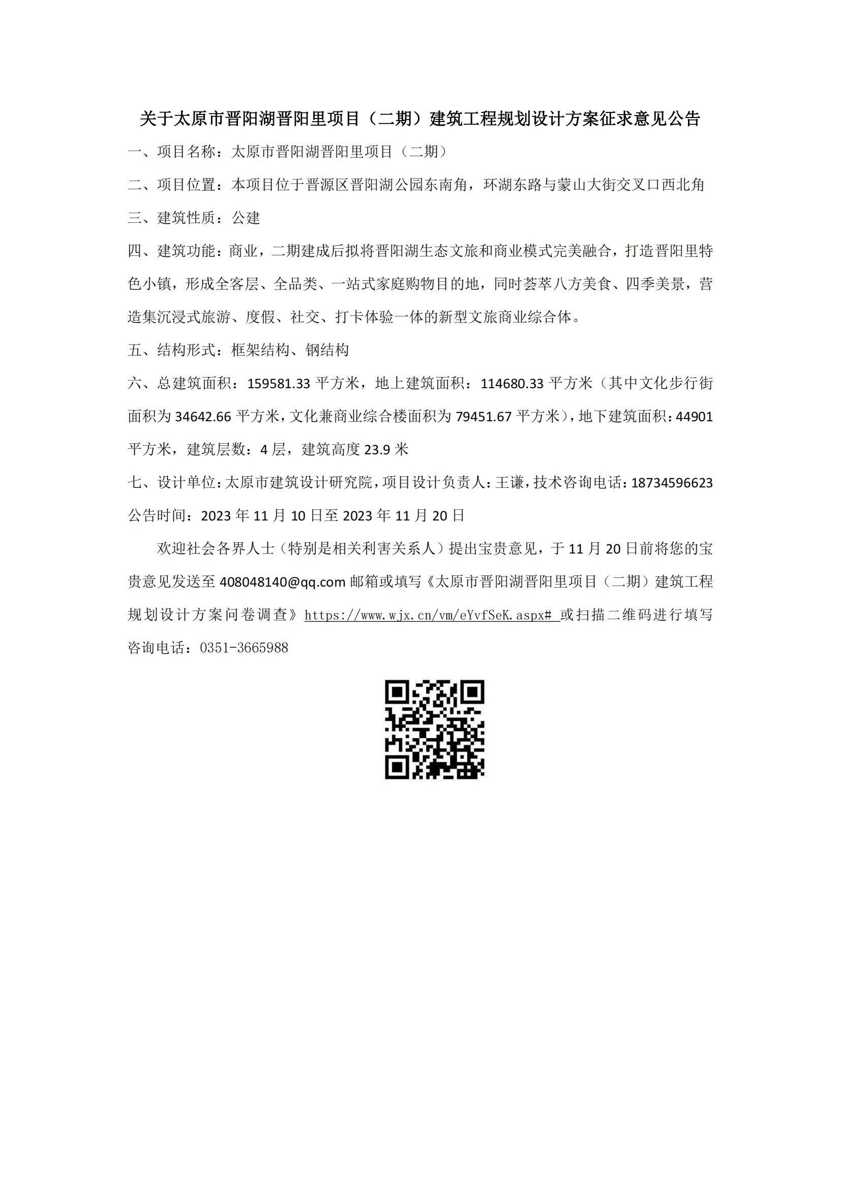 關(guān)于太原市晉陽湖晉陽里項目(二期)建筑工程規(guī)劃設(shè)計方案征求意見公告