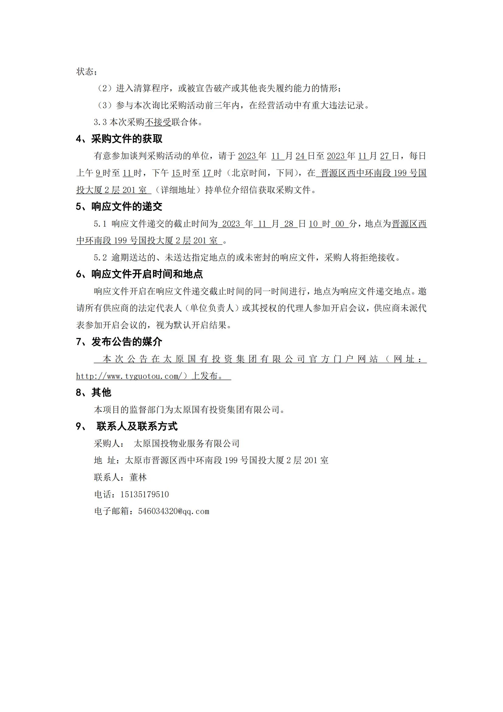 太原國投物業(yè)國科大太原能源材料學(xué)院開荒保潔項(xiàng)目詢比采購公告