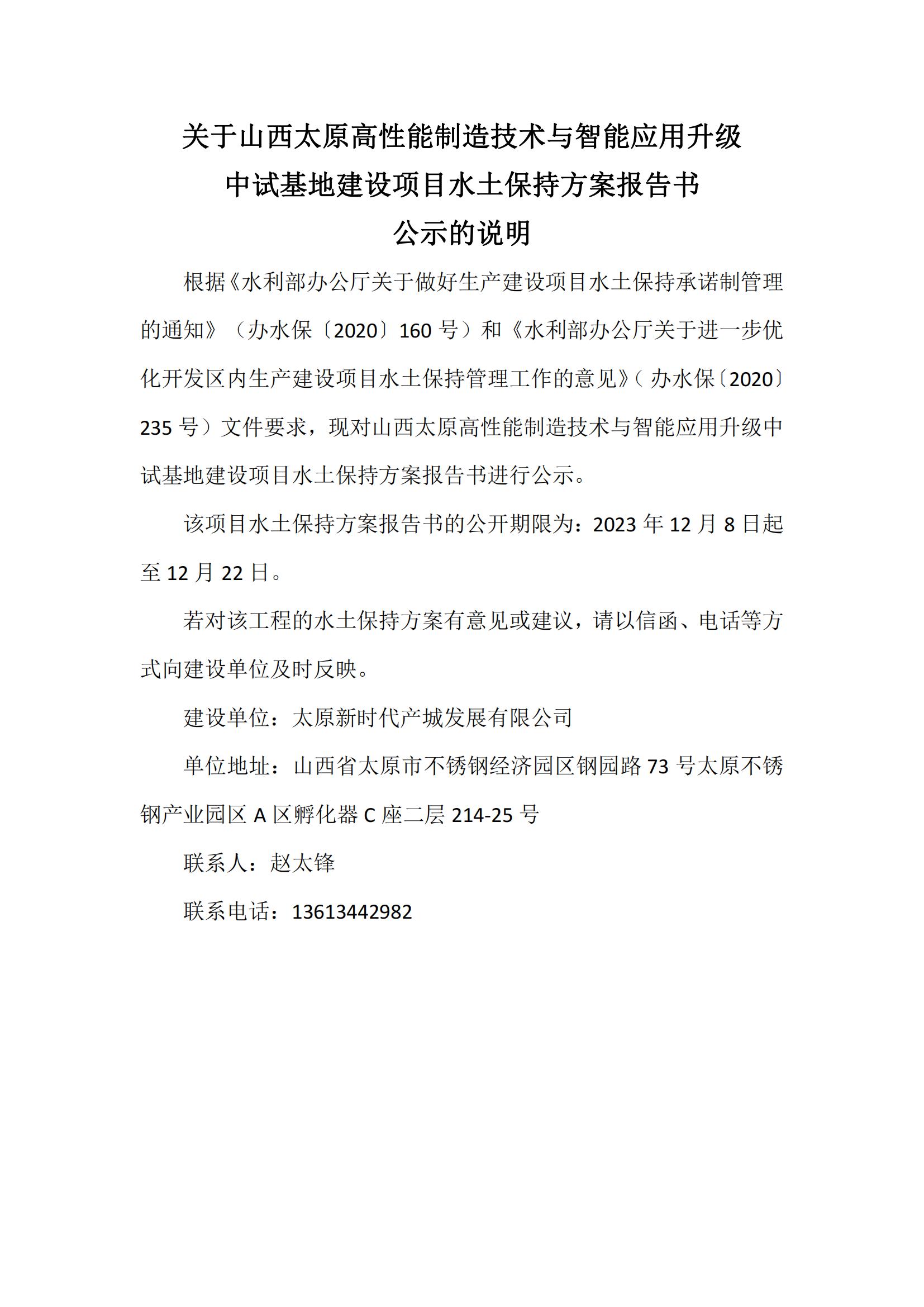 山西太原高性能制造技術(shù)與智能應(yīng)用升級(jí) 中試基地建設(shè)項(xiàng)目水土保持方案報(bào)告書(shū)公示