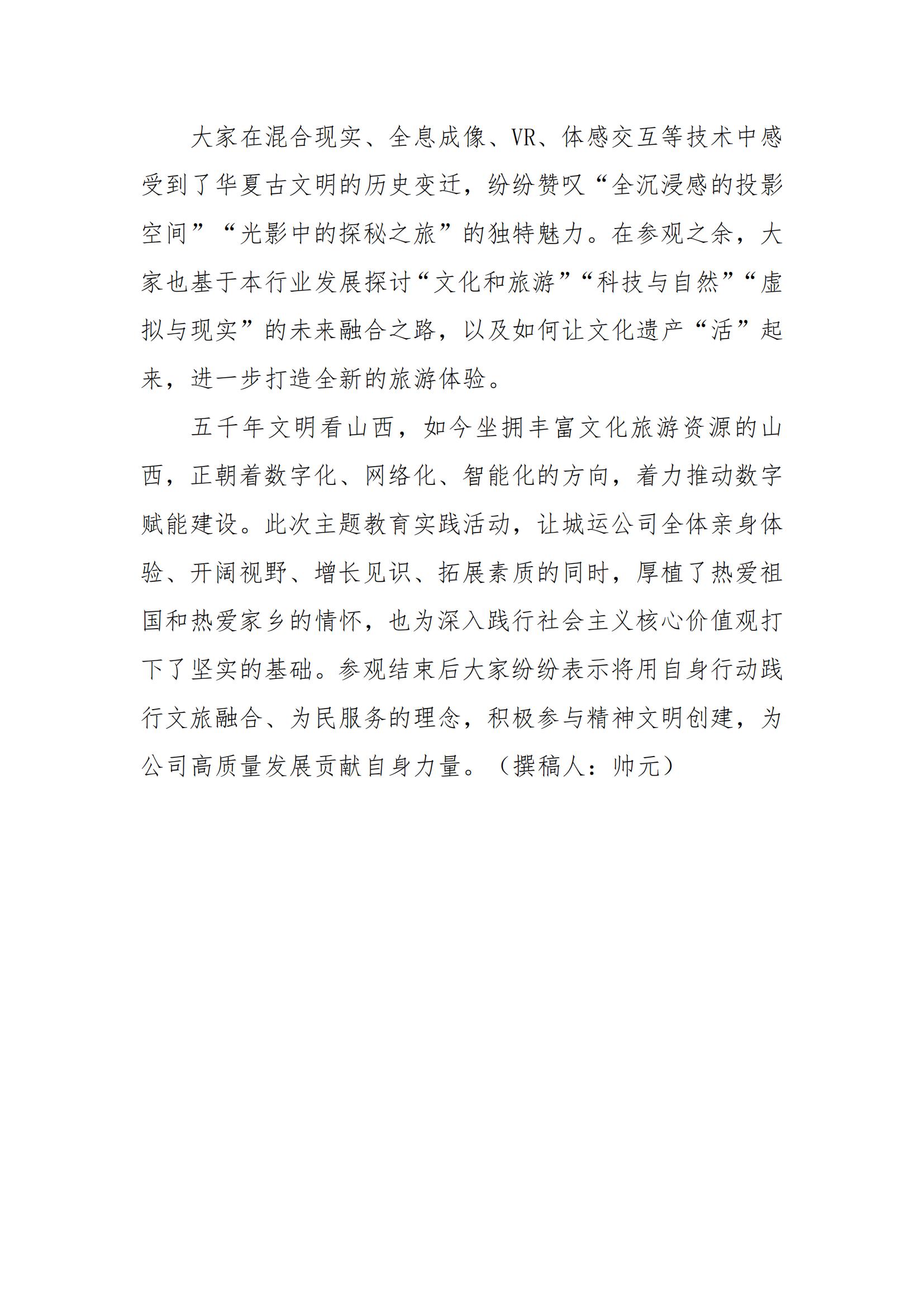 太原國投城市運(yùn)營有限公司開展“一館游山西 數(shù)智五千年“培育社會(huì)主義核心價(jià)值觀主題教育實(shí)踐活動(dòng)