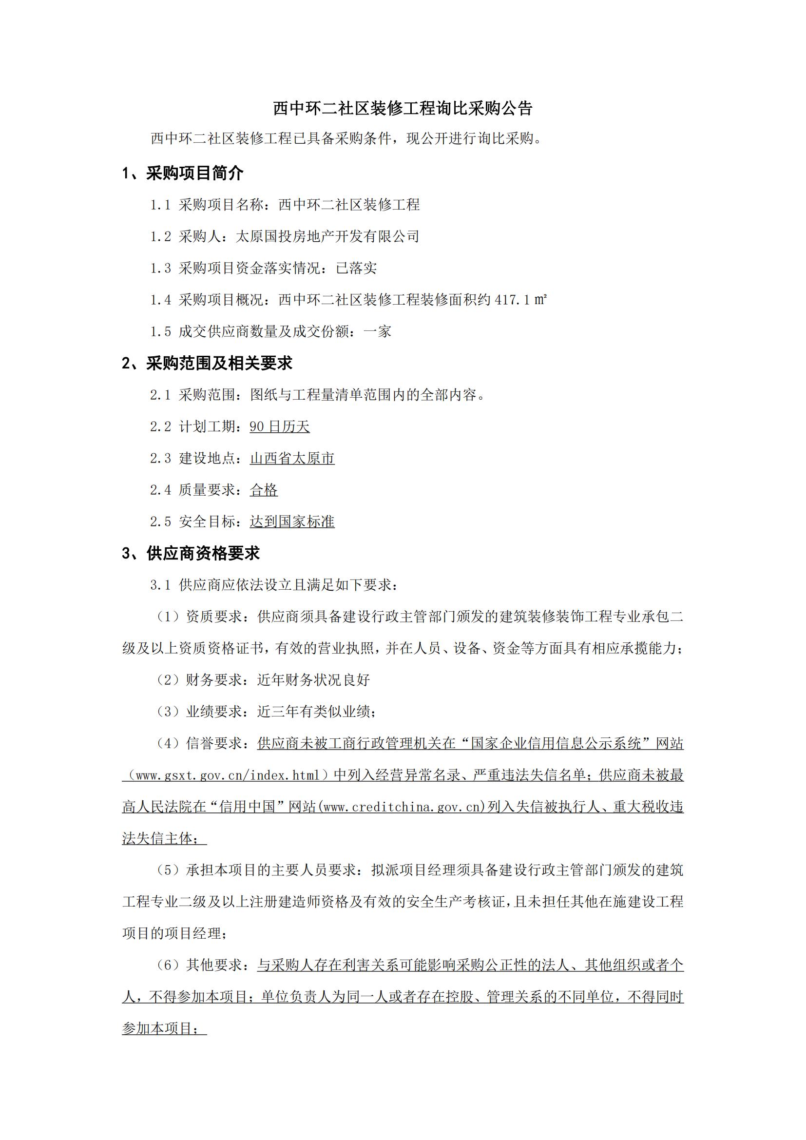 西中環(huán)二社區(qū)裝修工程詢比采購公告