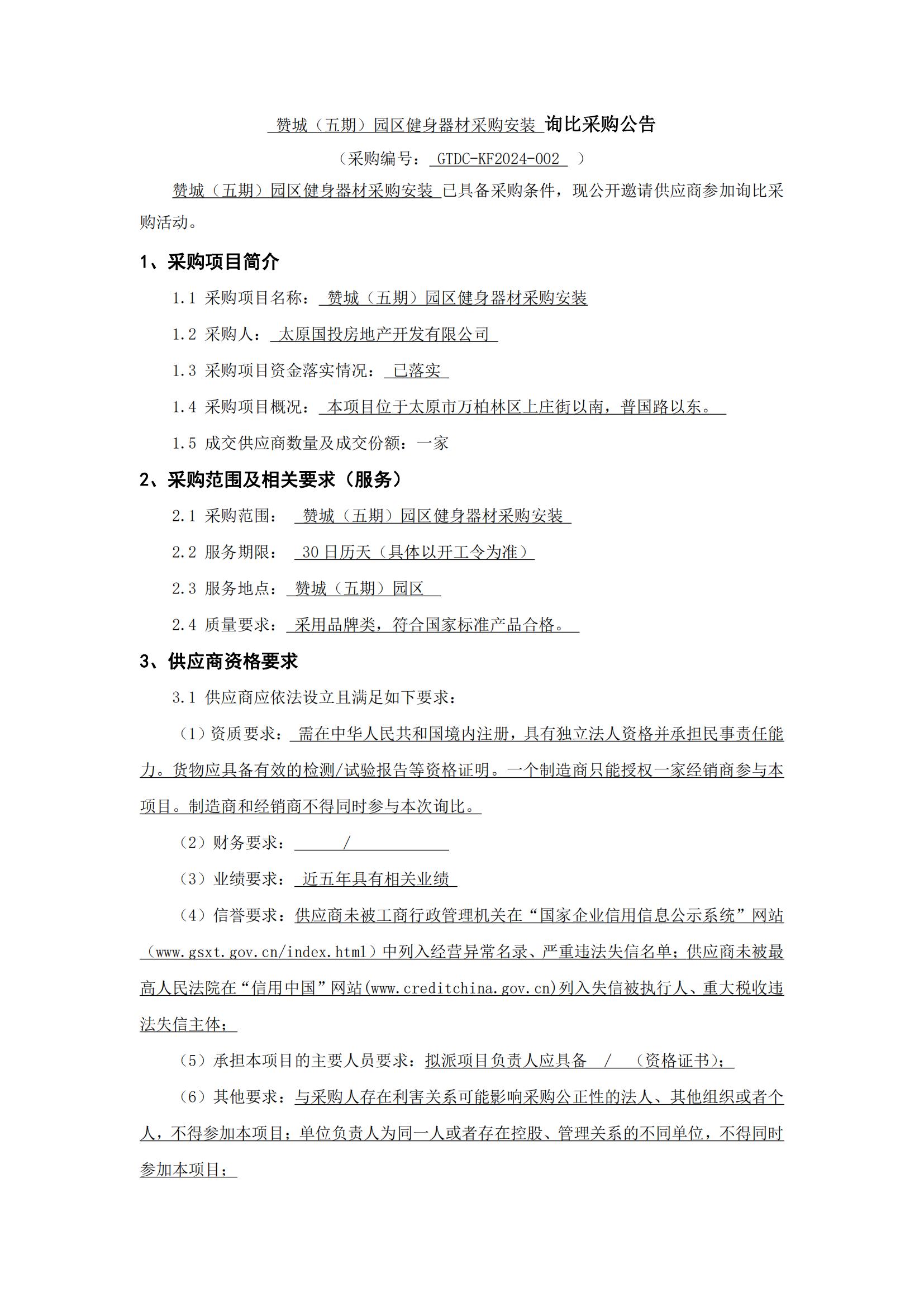 贊城(五期)園區(qū)健身器材采購安裝 詢比采購公告