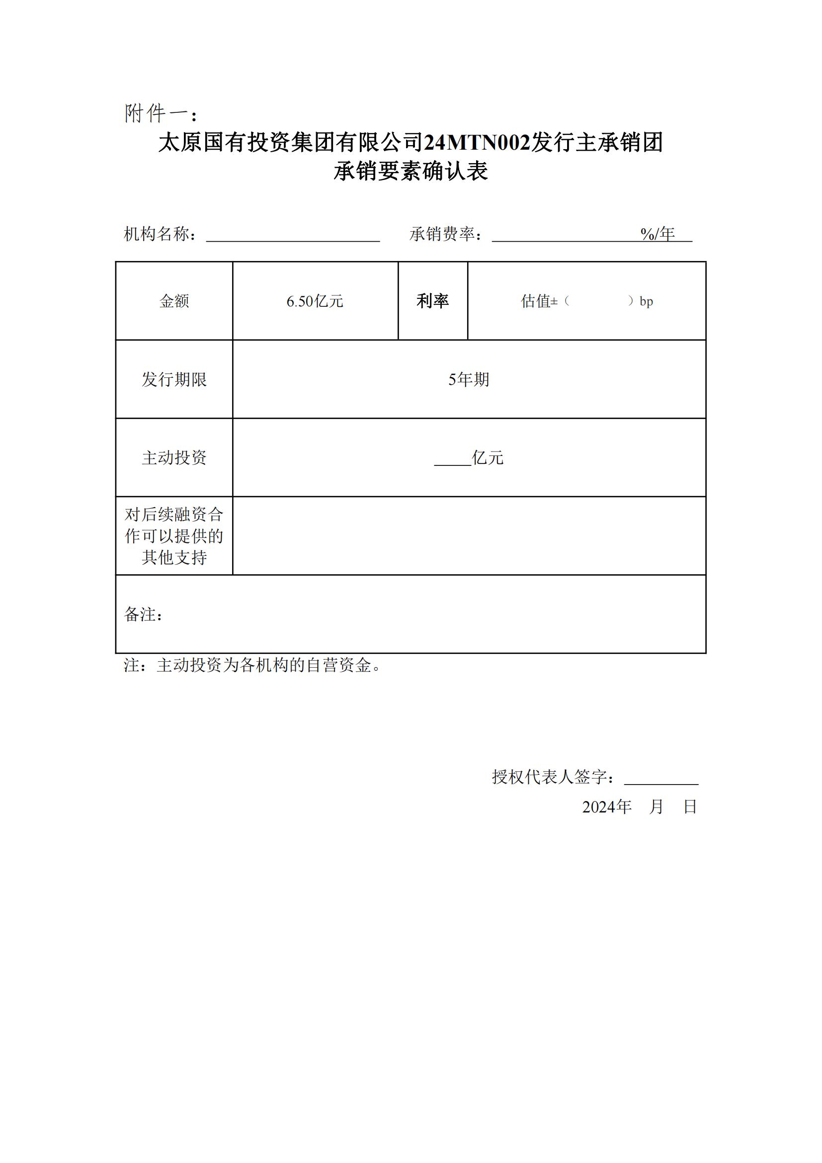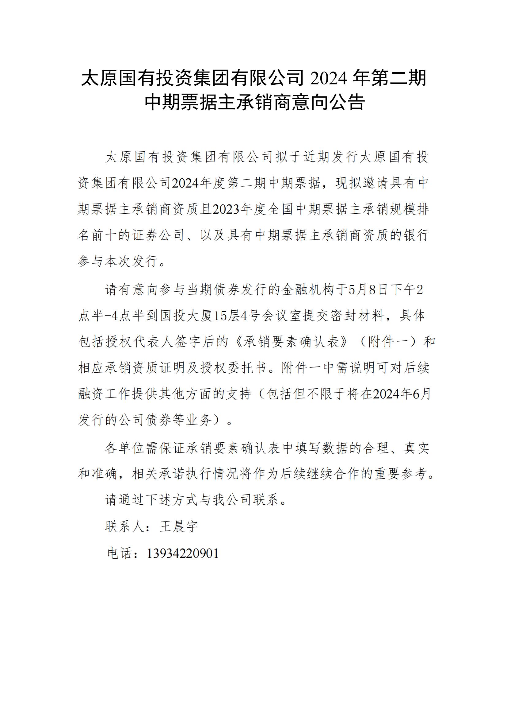 太原國(guó)有投資集團(tuán)有限公司2024年第二期中期票據(jù)主承銷商擇選相關(guān)事項(xiàng)的公告