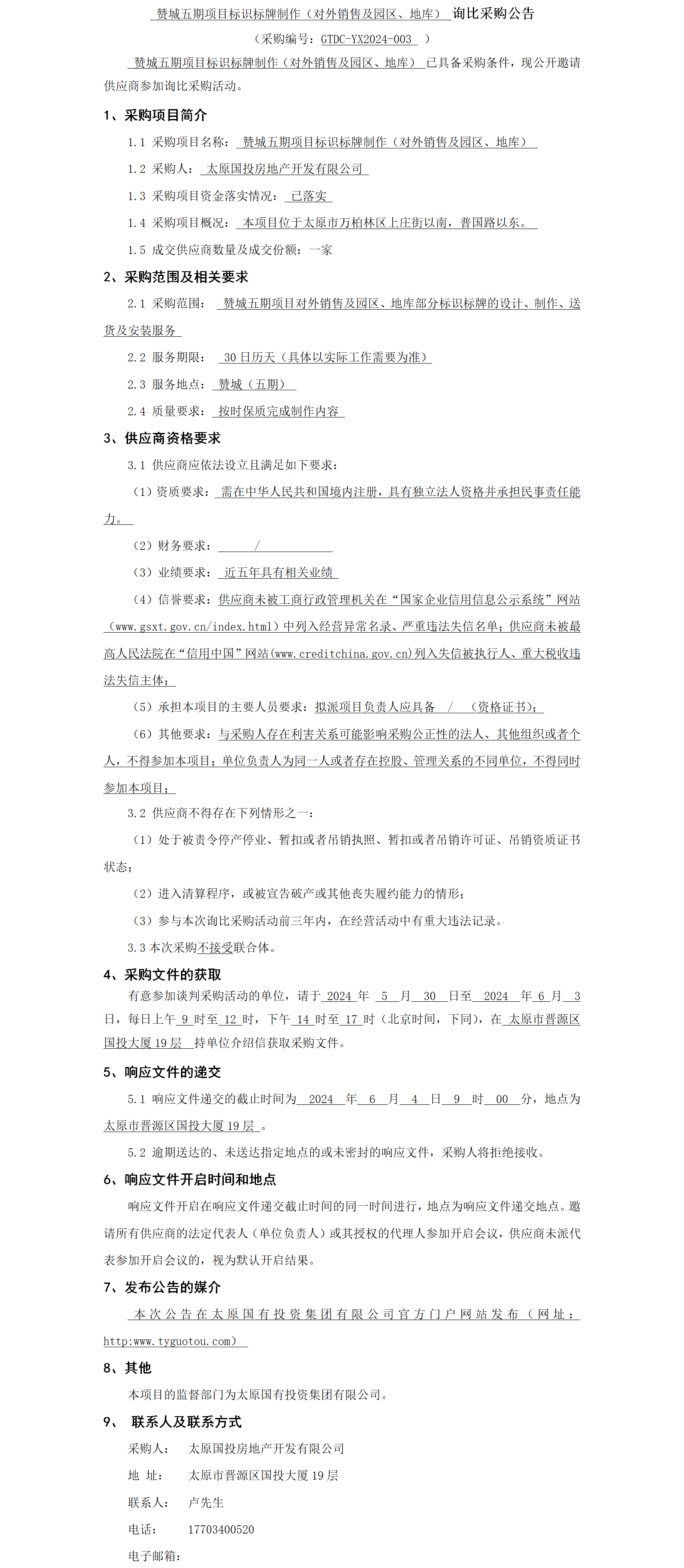 贊城五期項目標識標牌制作(對外銷售及園區(qū)、地庫) 詢比采購公告