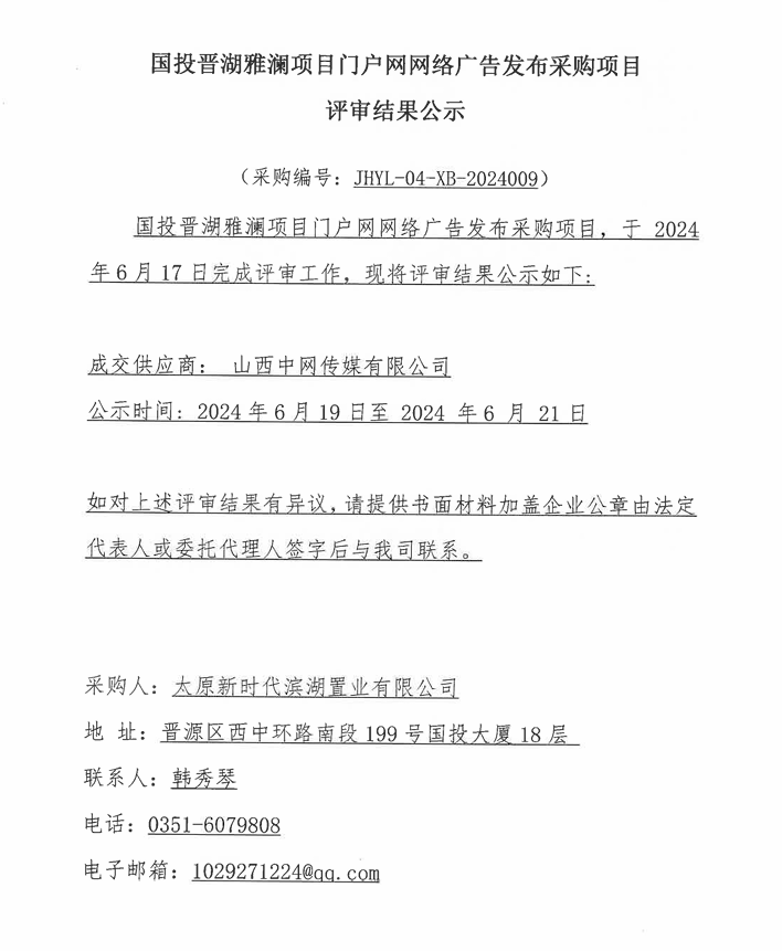晉湖雅瀾項目門戶網(wǎng)網(wǎng)絡(luò)廣告發(fā)布采購項目結(jié)果公示