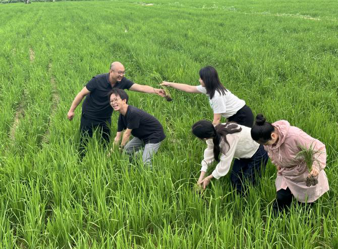 理論學(xué)習(xí)之后,活動進入了實踐環(huán)節(jié)。在專業(yè)人員的指導(dǎo)下,大家紛紛拿起農(nóng)具,走進稻田,親身體驗水稻種植的過程。雖然農(nóng)田泥濘,但大家的熱情絲毫不減,全體人員紛紛上陣,挽起褲腳,擼起袖子,彎著腰認(rèn)真地將秧苗一束束插在濕潤的泥土中,每一步都充滿了挑戰(zhàn)與樂趣。特殊的農(nóng)耕體驗,既是參與節(jié)約糧食活動的身體力行,也是將飯碗牢牢端在手里的生動實踐。