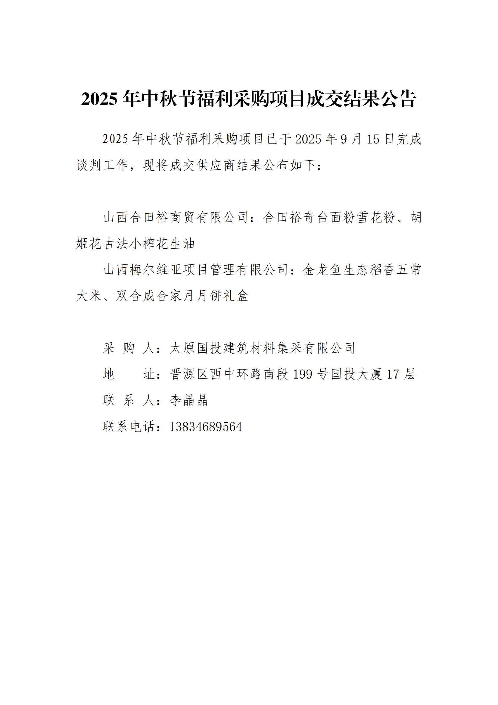 2025年中秋節(jié)福利采購(gòu)項(xiàng)目成交結(jié)果公告