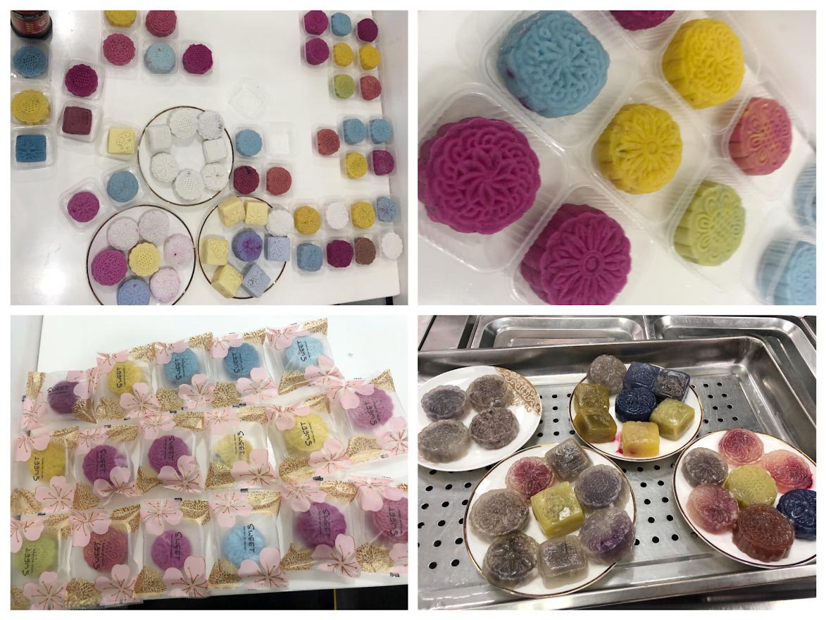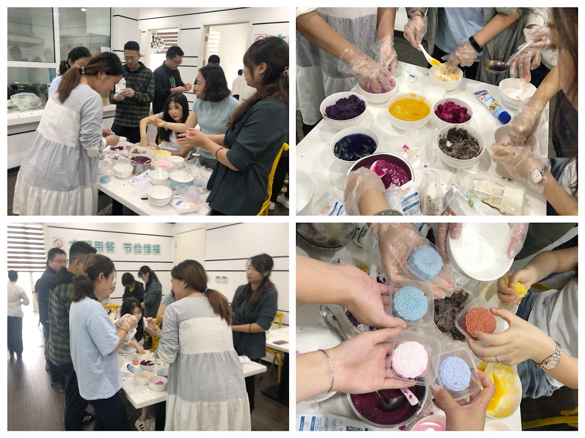 隨后,大家用提前準(zhǔn)備好的材料和工具開始手工制作冰皮月餅,活動(dòng)中,大家分工明確、配合默契、其樂融融,每一位員工都積極參與,創(chuàng)意十足,把不同顏色的果蔬汁摻到糯米粉中,制作出五彩繽紛的月餅。甚至有細(xì)心的員工把誠摯的祝福語或最想說的話寫在我們事先準(zhǔn)備好的便利貼上,滿滿的愛心隨同月餅贈(zèng)與他人。